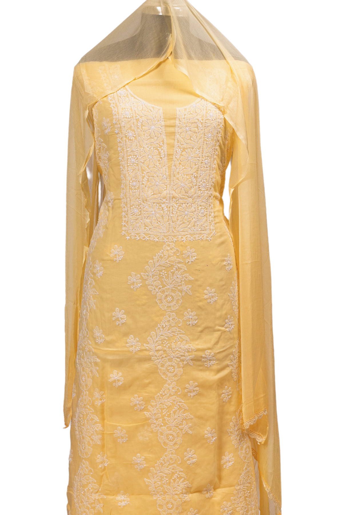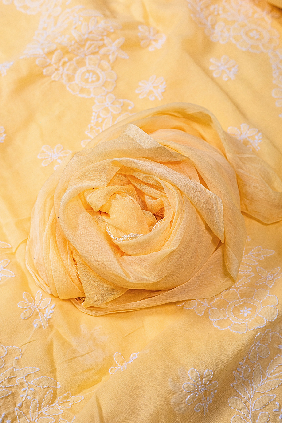 Elevate your ethnic wardrobe with the Terry Rubia Chikankari Suit featuring exquisite shadow work. This 3-piece unstitched set in vibrant yellow offers you the freedom to tailor a perfect fit while showcasing delicate traditional embroidery. Ideal for festive occasions or casual elegance, it blends comfort with timeless craftsmanship to make you stand out effortlessly.