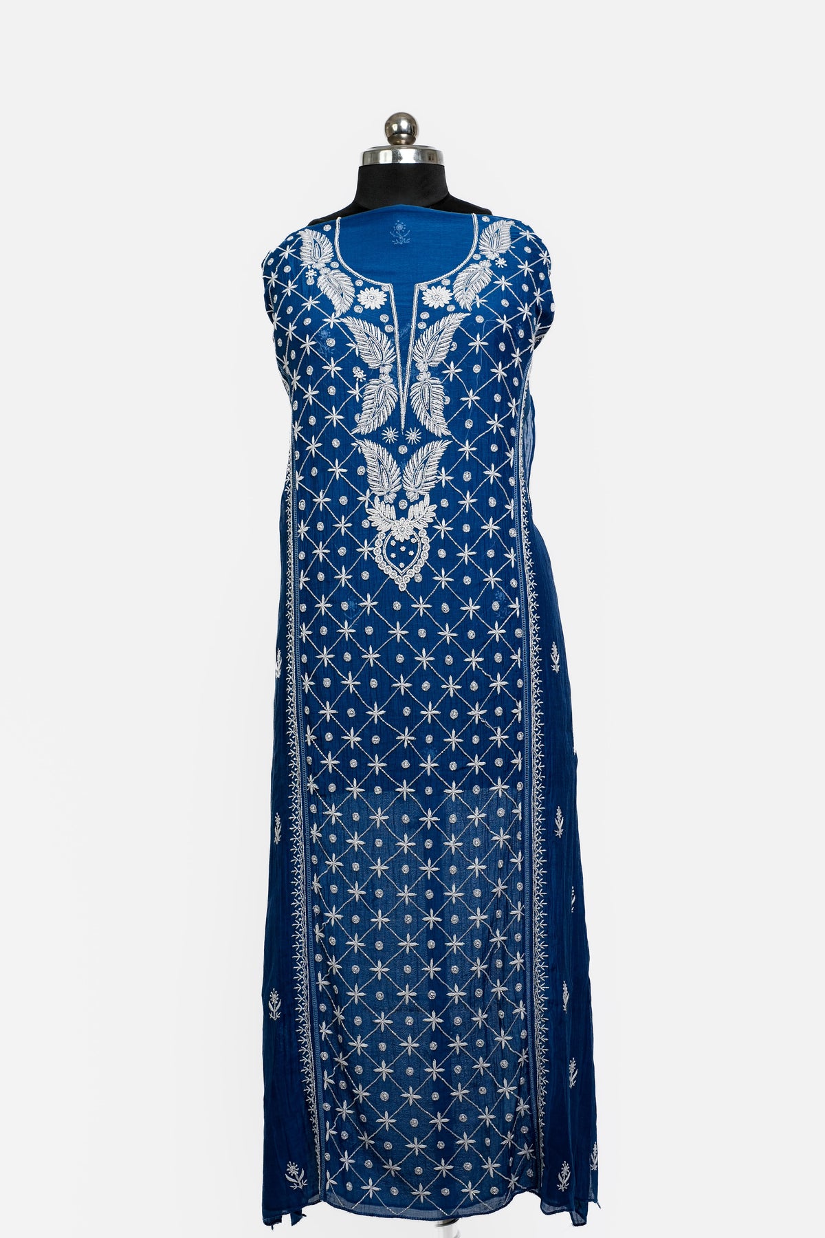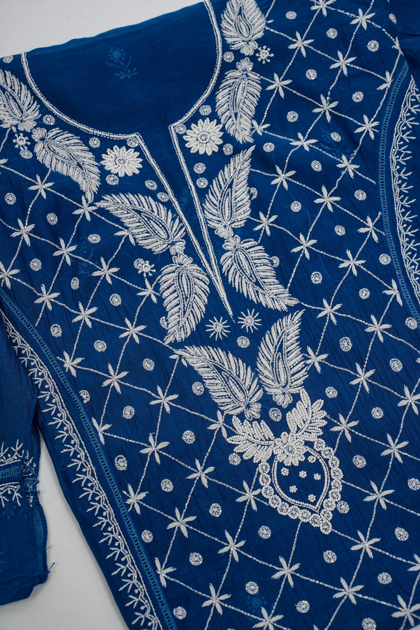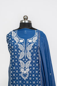 This Mul Chanderi Chikankari Suit in a rich teal shade showcases delicate embroidery, marrying classic craftsmanship with elegant design. Offered as a semi-stitched 2-piece set, it provides the freedom to tailor a refined outfit that reflects your personal style. Perfect for those seeking sophistication with a vibrant touch.